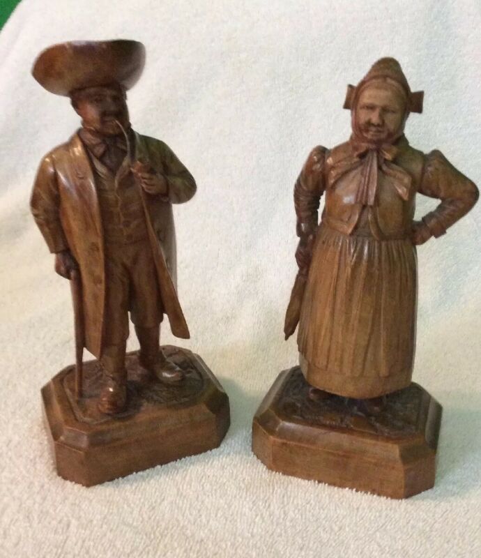 Title (ebay affiliate link): Pair Of Ornate Hand Carved Wooden Figures, 7 1/2” Tall.