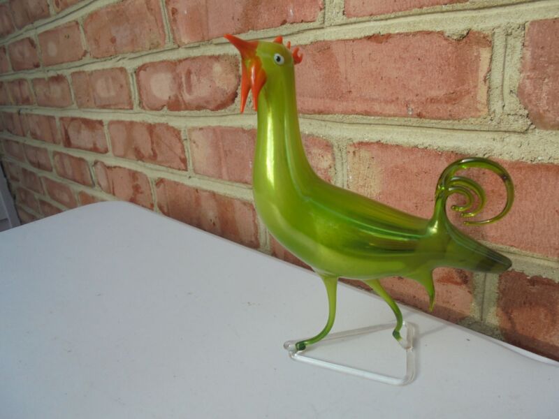 Antique German Blown Glass Green Rooster Standing Ornament 6"