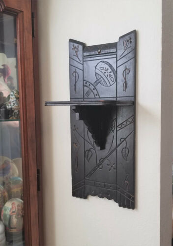 Title (ebay affiliate link): Antique Aesthetic Movement Victorian Ebonized Wooden Oil Lamp Wall Shelf