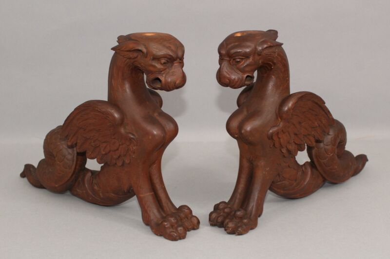 Title (ebay affiliate link): Pair Antique Carved Wood, Mythological Winged Dragons Architectural Fragments NR