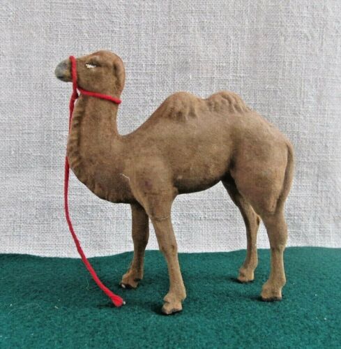 Title (ebay affiliate link): Antique GERMAN FLOCKED CAMEL Wooden Stick Legs Putz Nativity Christmas