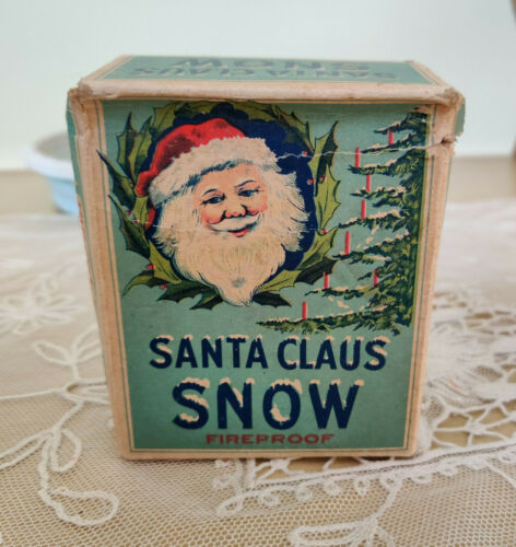 Title (ebay affiliate link): ANTIQUE SANTA CLAUS SNOW Box FULL U.S MICA MFG CO Snowflakes Vintage Christmas