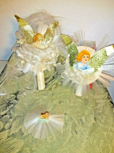 Vintage Antique Angel Hair Christmas Tree Toppers And Tree Ornament