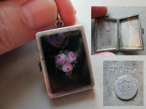 ANTIQUE VINTAGE ART NOUVEAU DECO SILVER ENAMEL KEEPSAKE LOCKET FOB CHARM PENDANT