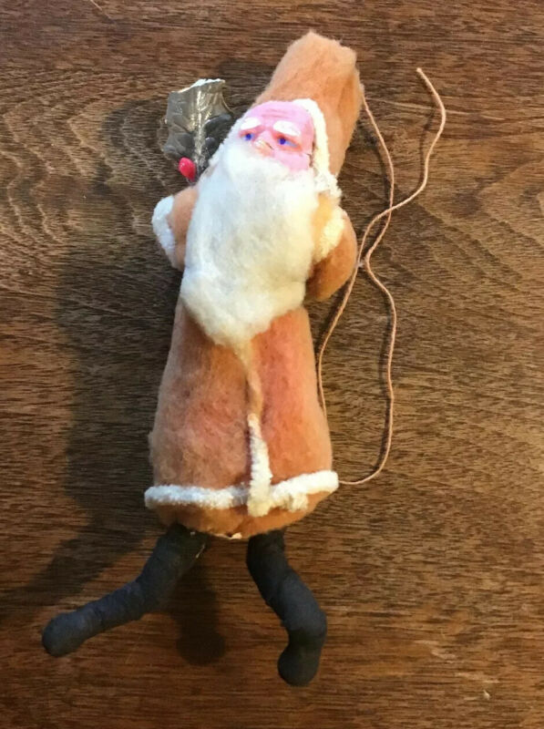Antique Vintage 7" tall Spun Cotton Batting Clay Face Santa Figure Ornament