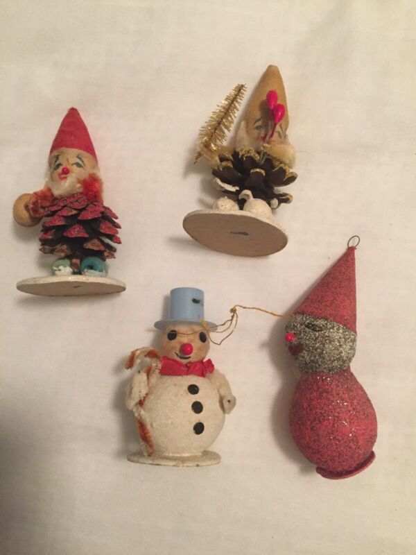 Title (ebay affiliate link): Set of 4 Pinecone Pixie Elves Snowman Clown Putz Gnomes Japan