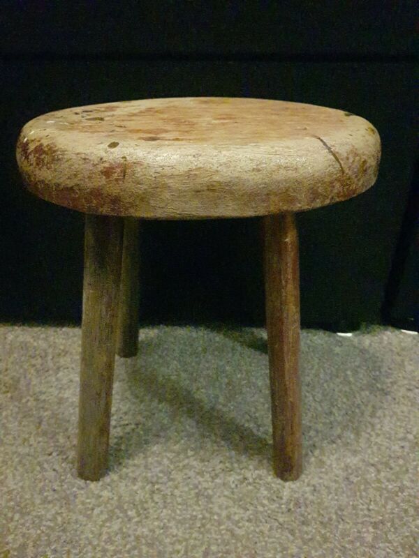 Title (ebay affiliate link): Vintage Made Wooden 4 Legged Milking Stool, Plant stand, Rustic, Country, Prop