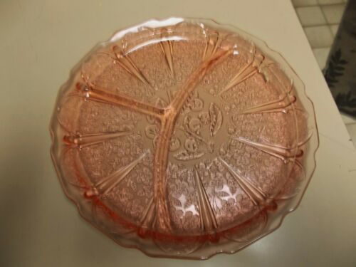 CHERRY BLOSSOM DEPRESSION GLASS DIVIDED DINNER PLATE PINK JEANETTE GLASS