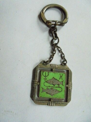 Vintage Art Deco Pisces Zodiac Sign Enamel Keychain Made in France