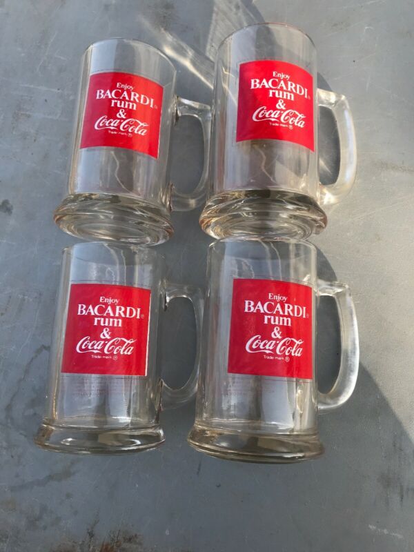 Title (ebay affiliate link): Set Of 4 Coca Cola & Bacardi Rum Vintage Enjoy Glass Mug Heavy 5 1/2" Tall