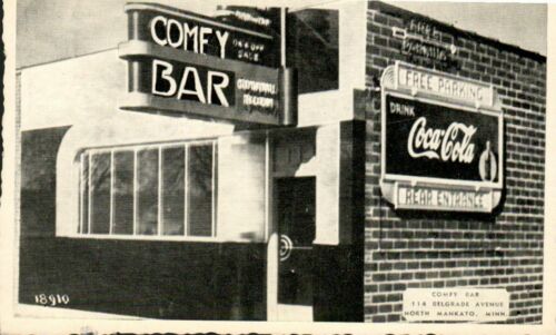 Antique Postcard North Mankato Minnesota MN "Comfy Bar" Coca-Cola Sign