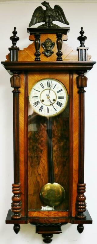 Title (ebay affiliate link): Antique German Junghans 8 Day Spring Driven Striking Mahogany Vienna Wall Clock