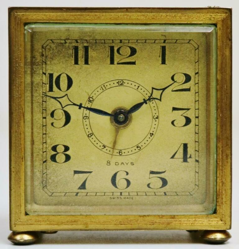 Antique Swiss 8 Day Mantel Clock Swiss Alarm Desk Clock For Spares Or Repair