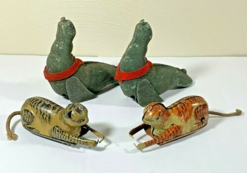 Title (ebay affiliate link): Vintage Wind Up Tin Toys 2 Cats and 2 Seals - Lot of 4 Pieces