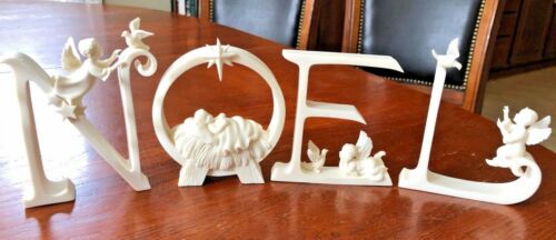 Title (ebay affiliate link): 2001 Roman, Inc. Noel Letters Baby Jesus Nativity Angel Cherub Dove Bird Beige