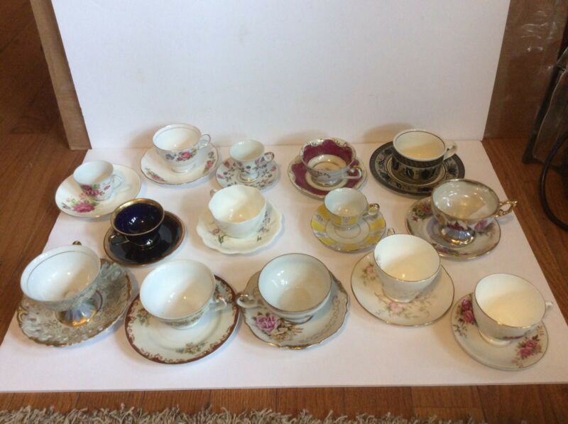 Vintage Lot of 14 Mixed Cups and Saucers England Japan