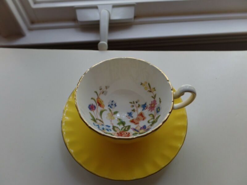 VINTAGE AYNSLEY FINE BONE CHINA TEA CUP AND SAUCER YELLOW EX CON GOOD GIFT
