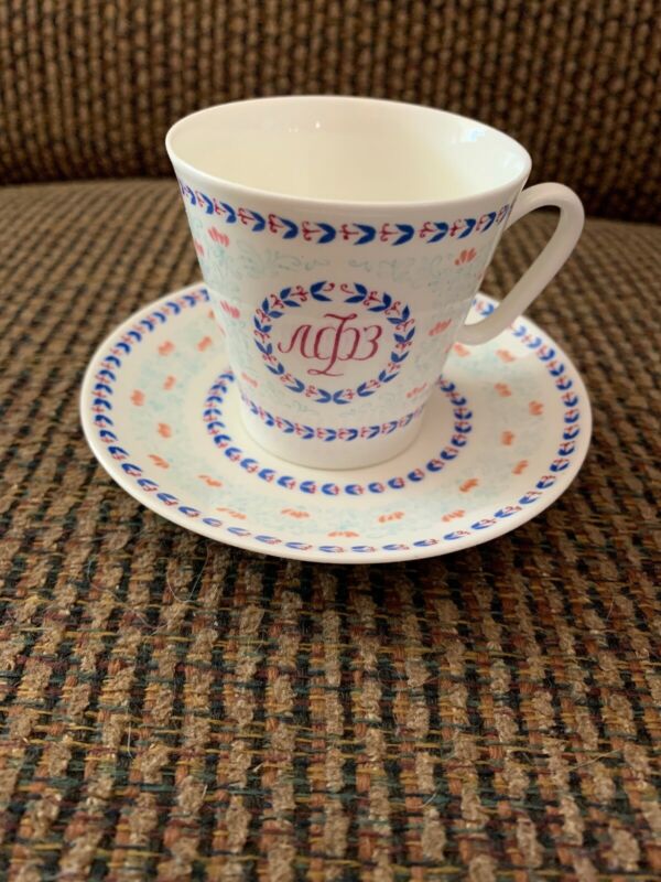 USSR Lomonosov Tea Cup & Saucer with makers Mark On Front Of Cup.
