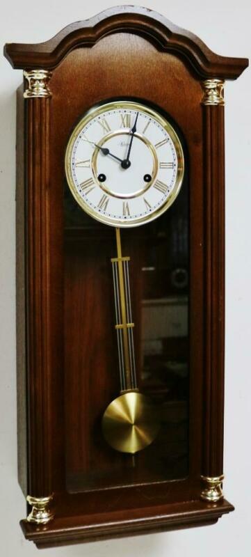 Title (ebay affiliate link): Small Vintage Franz Hermle 8 Day Mahogany Slimline Gong Striking Wall Clock