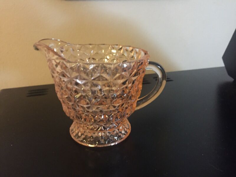 Title (ebay affiliate link): Glass Sugar Creamer Depression Vintage Pink Bowl Set Diamond Pattern