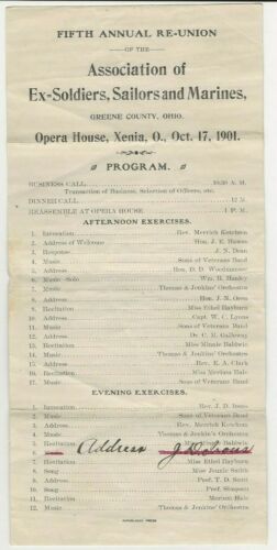 Title (ebay affiliate link): Fifth Annual Reunion of Ex - Soldiers, Sailors and Marines Greene County, Oh.