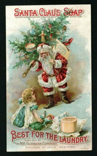 Title (ebay affiliate link): 1880s Trade Card - Santa Claus With Christmas Tree & Presents for Little Girl