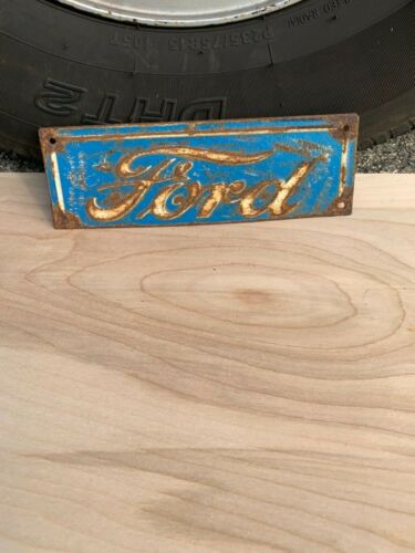 VINTAGE OLD FORD EMBOSSED METAL LICENSE PLATE TOPPER FORD CAR TRUCK