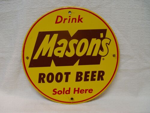 Vintage Curved Edge Painted Metal Mason''s Root Beer 10" Advertising Soda Sign