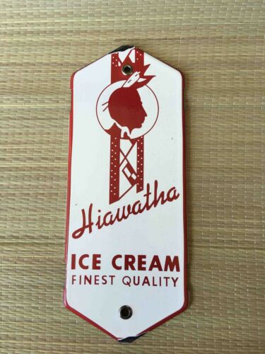 Title (ebay affiliate link): Old Hiawatha Finest Quality Ice Cream Porcelain Diamond Shaped Door Push Plate