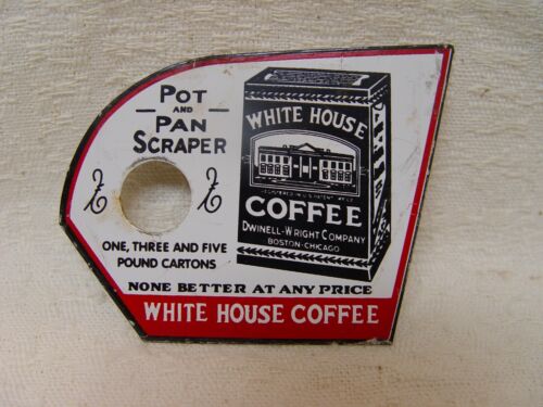 Vintage White House Coffee Tin Metal Advertising Kitchen Pot & Pan Scraper