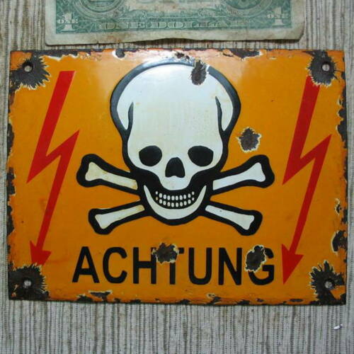 Title (ebay affiliate link): 100% ORIGINAL - Porcelain Sign 1939-1945, WWII, Danger, Skull & Crossbones No 32
