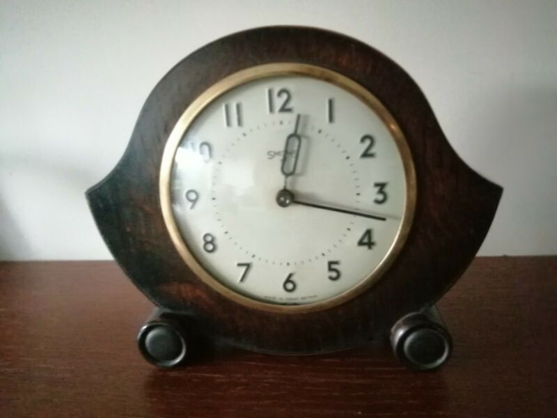 SMITHS Genuine Art Deco Wood Mantle Clock Wind- Up Working Fine