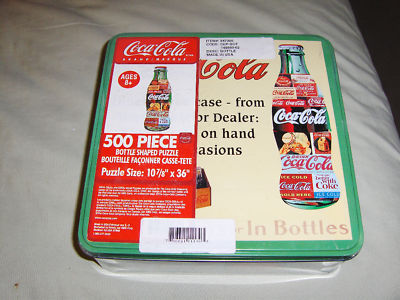 Title (ebay affiliate link): COCA-COLA BOTTLE SHAPE PUZZLE 500 PIECE SEALED IN TIN