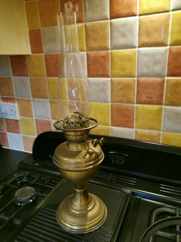 Brass oil lamp with glass chimney