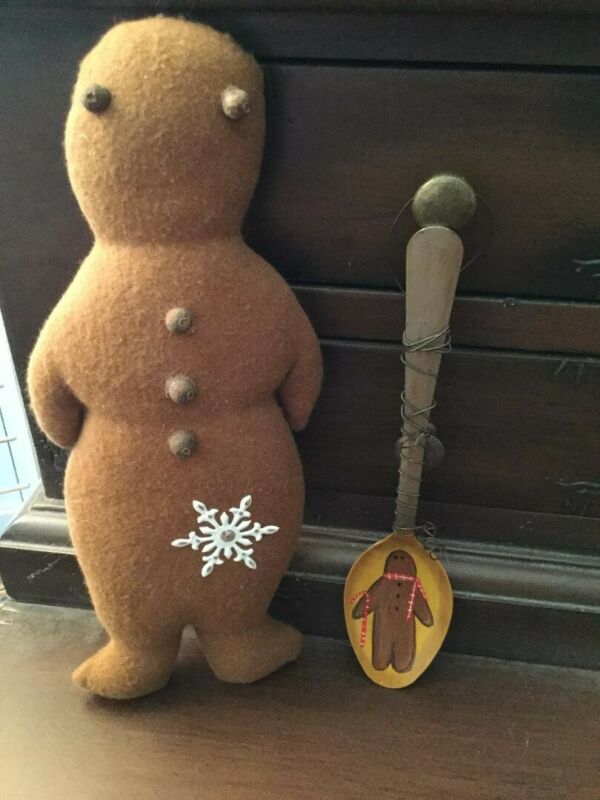Title (ebay affiliate link): PRIMITIVE HANDMADE CHRISTMAS GINGERBREAD MAN AND GINGERBREAD PAINTED SPOON ORNIE
