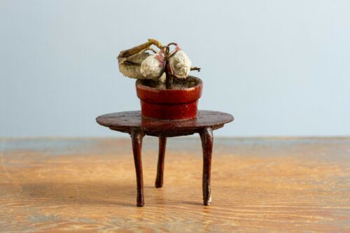Title (ebay affiliate link): Vintage Antique Dollhouse Furniture Miniature Wooden 3 Legged Table w Flower Pot
