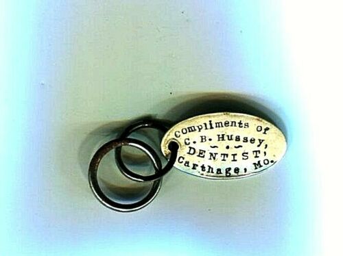 ANTIQUE 1895 CARTHAGE MO. C. B. HUSSEY DENTIST PROMO GIVEAWAY KEY CHAIN FOB
