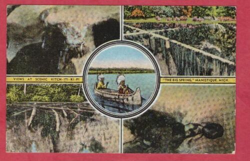 Title (ebay affiliate link): Manistique Michigan multiview postcard Kitch-iti-ki-pi big spring canoe MI Mich