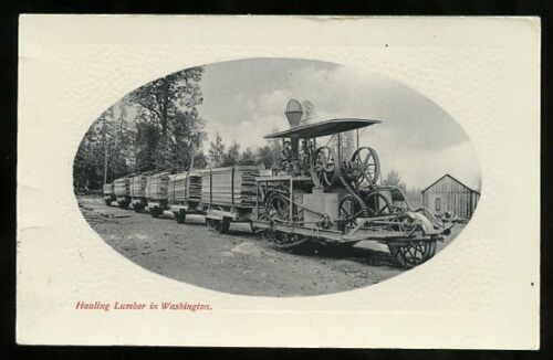 Title (ebay affiliate link): PNC Glosso postcard Trackless Steam Engine Hauling Lumber in Washington State