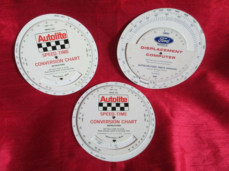 Title (ebay affiliate link): SET OF 3 VINTAGE FORD AUTOLITE SPEED TIME RACING COVERSION CHARTS