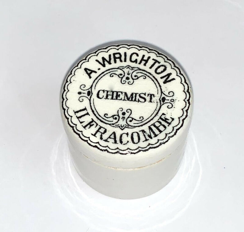Title (ebay affiliate link): Antique English Chemist''s Jar: "A. Wrighton, Ilfracombe" 1.5" Diam. x 1 3/8"H