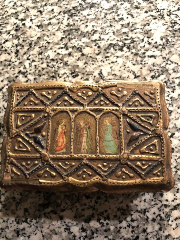 Title (ebay affiliate link): Small Antique Carved Gilt Wood Trinket Box With Panels Featuring Painted Angels