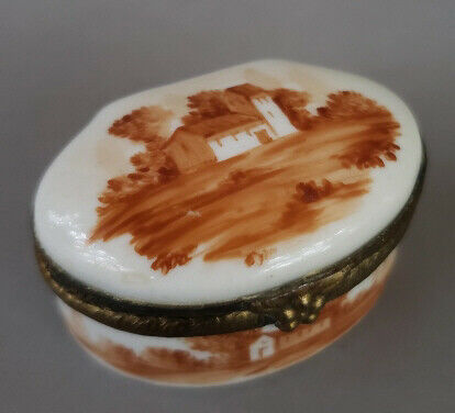 Title (ebay affiliate link): Antique Hand Painted Porcelain Patch Box - Signed- Buildings in landscape - Oval