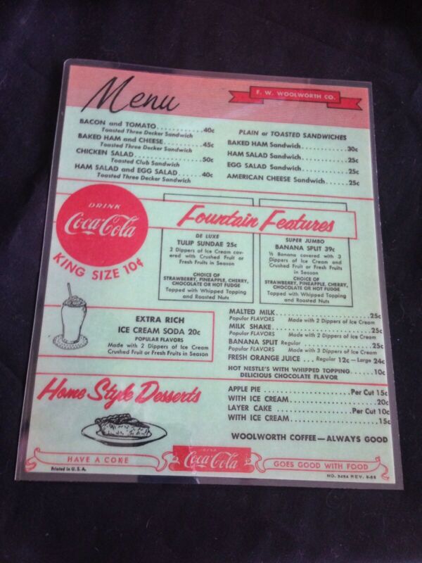 Title (ebay affiliate link): WOOLWORTH MENU COCA COLA DINER 9-56 (September 1956)