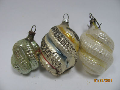 3 antique vtg glass xmas ornaments nubby twist bumpy