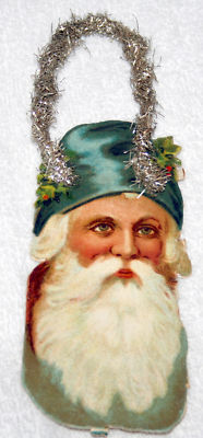 Title (ebay affiliate link): Early Santa Head, Blue Hat. Paper & Tinsel Xmas Orn