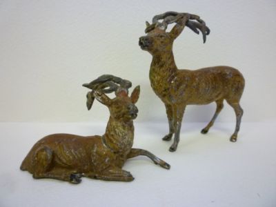2 Vintage LEAD Metal Christmas REINDEER Putz GERMANY