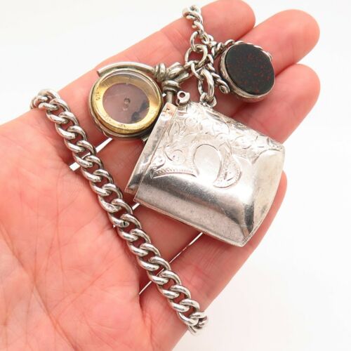 Title (ebay affiliate link): Antique Victorian Sterling Silver Vesta Case Compass Bloodstone Fob T-Bar Chain