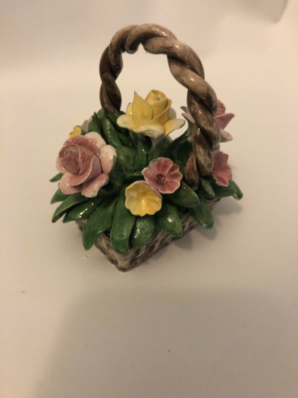 Vintage Nuova Capodimonte Porcelain Basket With Flowers Excellent Condition