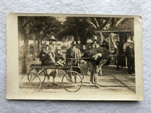 Title (ebay affiliate link): 1920 Cawston Ostrich Farm Children in Cart Pasadena CA Real Photo Postcard